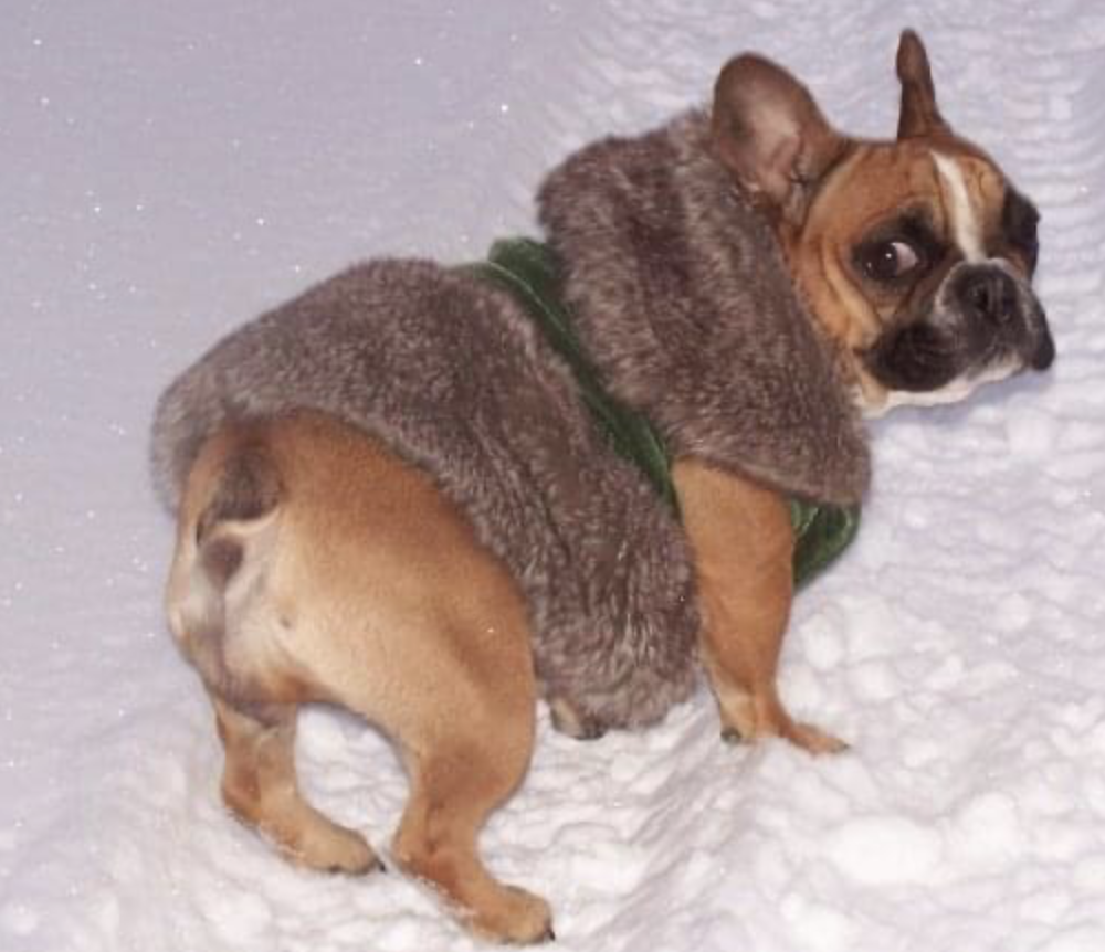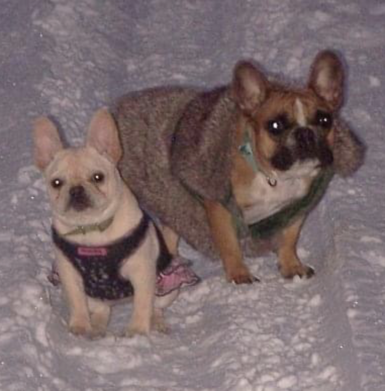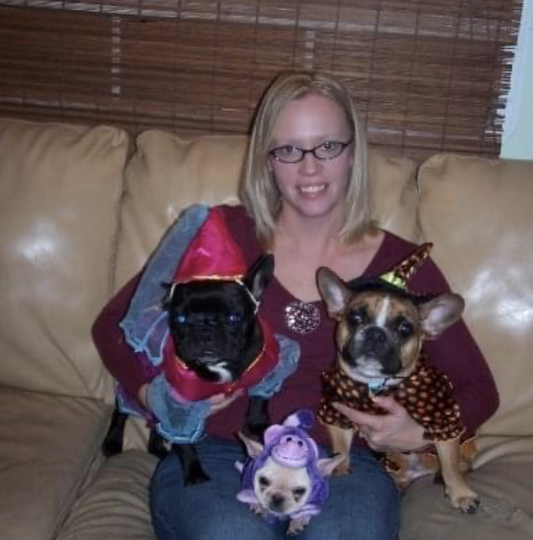 They went everywhere with me and went through a decade of life that I really didn’t understand where I was going. I went through a divorce at 26 and lived on my own for the first time with my Frenchie girls. I couldn’t imagine living life without them. We’d curl up on the bed and watch out little 15 inch TV and sit and drink wine on the front porch. Everyone loved them that came to visit. I’d dress them up regularly in a time when dressing your dog wasn’t really a thing.