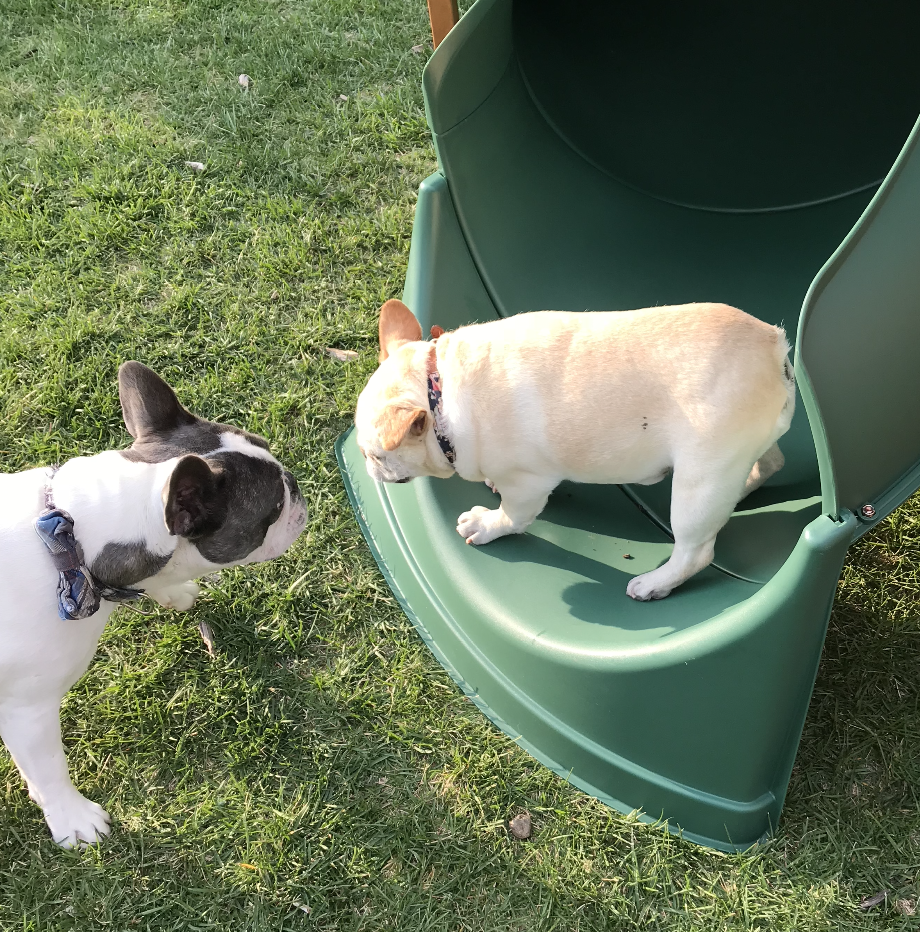 We went on a mini staycation. It was literally the first time we’d been away. Darcy passed. I felt like a bit of my soul was taken that day. Paris was now the loan girl and I could tell she didn’t know what to do with herself. Romeo came to join us a several months later. He’s actually quite a bit like Darcy. In fact, they come from the same lines. We moved to our next house where Paris and Romeo definitely made themselves at home. Jewels joined us there. It was a corner lot and everyone enjoyed stopping to pet the Frenchie clan as they walked by. Maddie joined us as well. Paris did a great job dealing with all of the young pup energy as an old girl. Oh, and she loved food.