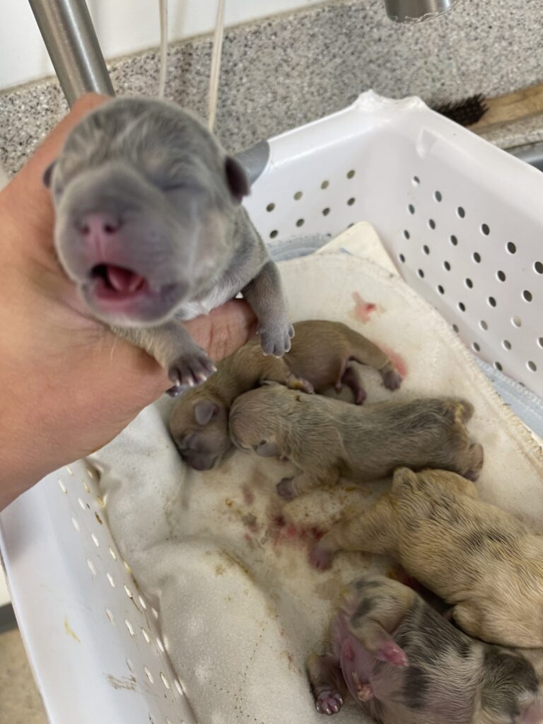 Who can relate with Lessie? She says she’s ready for these pups to move on. Hehe! They are doing great and are just the sweetest little puppers. Yesterday was the first day of eating puppy mush, which they have completely been enjoying. They still love Mama’s milk as you can see. Only one week left Lessie…you can do it. 😉